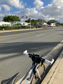 Half of this ride is part of the trip to Pearl Harbor Center and, then, from here the path follows a bay with the same name. The view to the left (when going to) is very pretty, the bay, navy ships tied to their piers, everywhere; mangrove trees on it shores; a park, the power station as I ride; and the neighborhoods to the right.