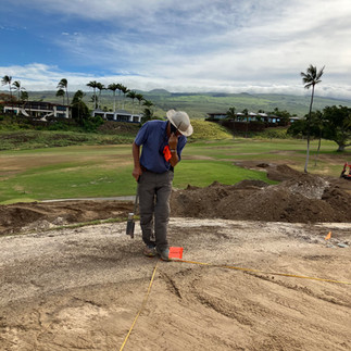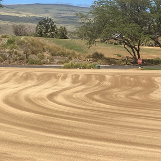 A just finished shaped green, starting to grass it as we speak!, as one can say! Denis running the disk to plant the grass into the sand.